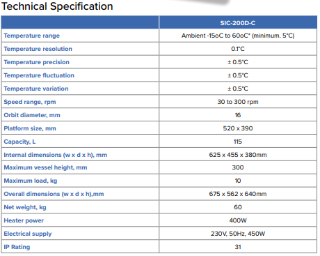 Kompaktit yksiköt eivät vie paljon tilaa laboratoriopöydällä, ja niissä on integroitu ajastin sekä digitaalinen näyttö nopeudelle ja lämpötilalle. Jokainen inkubaattori on varustettu BioCote® antimikrobisella suojauksella